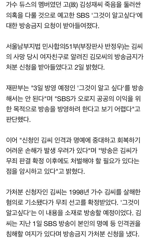 그것이 알고싶다 방송금지 가처분?