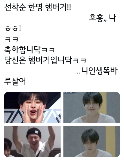 햄버거 당첨됐어ㅋㅋㅋㅋㅋㅋㅋ