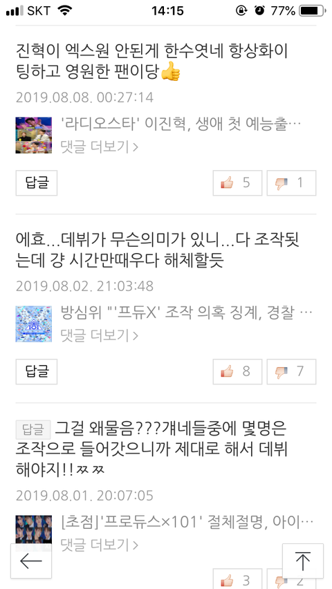 난 저런 키보드 워리어 ㅅㅋ들 때문에 힘들게 데뷔한 엑스원 무산되서 소속사 돌아가는 꼴 못봄