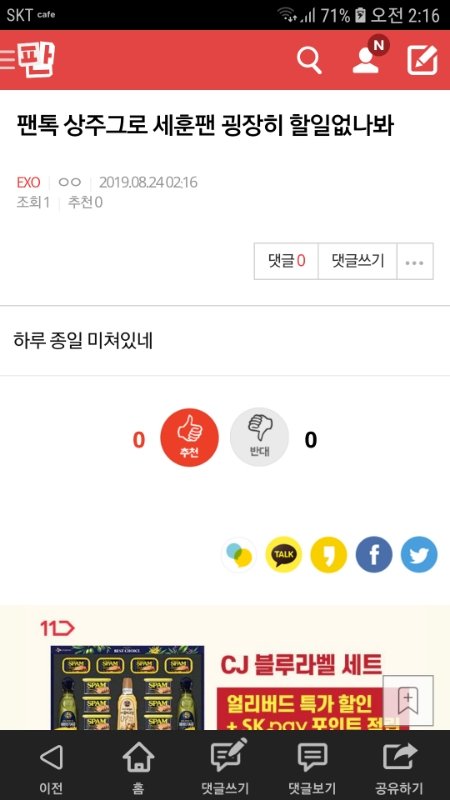 팬톡 상주그로 세훈팬 굉장히 할일없나봐