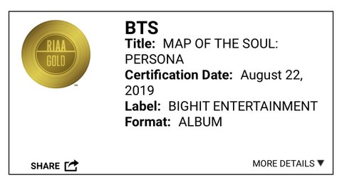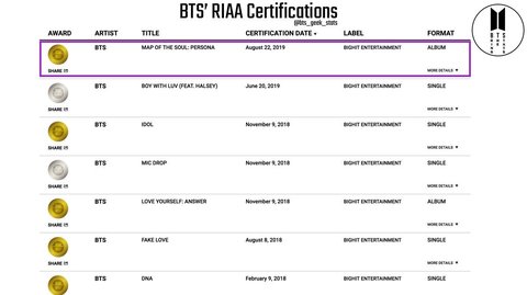 페르소na 앨범 ri/aa 골드 인증