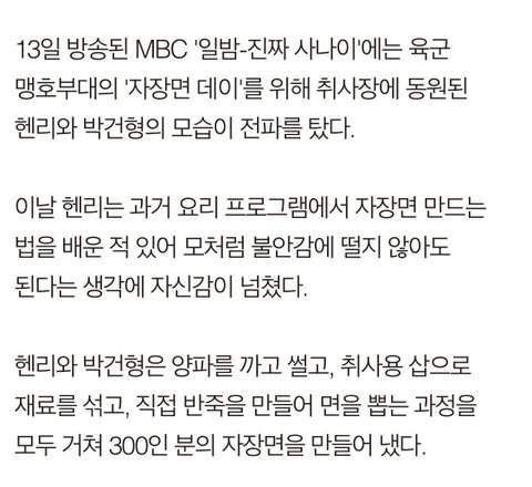 진짜 사나이에 나온 조리병 체험한 것처럼