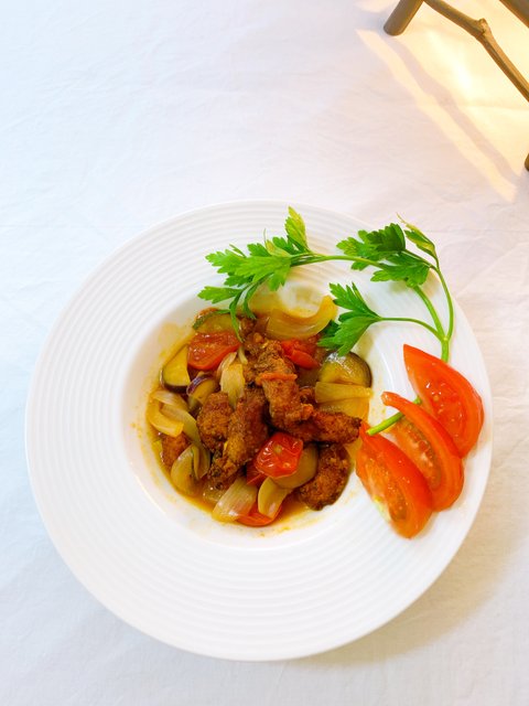소스가 다 되면 미리 튀겨준 탕수육 고기를 살짝 한번 더 튀겨주고 세팅한다.