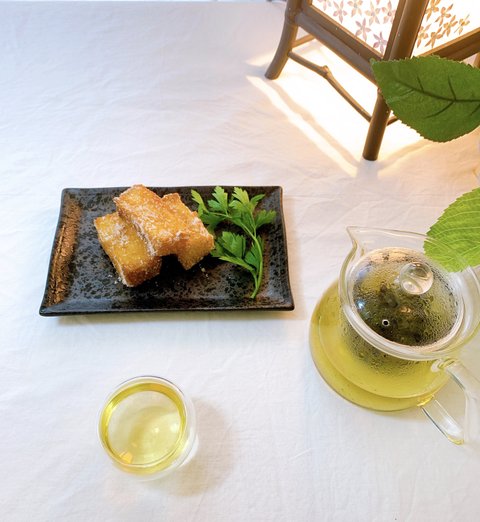 생각지도 않은 좋은 우롱차를 얻게되어 청소하다 잠시 쉬면서 식빵 튀김에 맛을 본다.