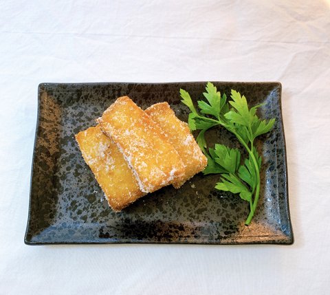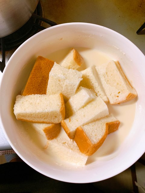 대충 잘라 밀가루 엷게 풀어 식빵을 적시고( 그냥 튀기면 식짱이 기름을 흡수해 스폰지가 되버린다)