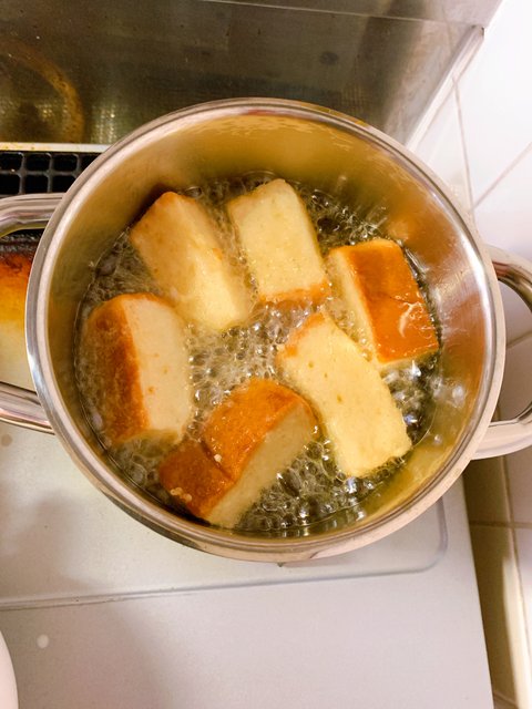 식빵을 한 번 구입하면 빠른 시간내에 먹을 수 없어 얼려놓고 먹는데 오늘 온 집안을 정리 청소하면서 나온 식빵이 냉장고 냄새가 베어 토스트는 생각이 없어 튀겨 보기로 했다.