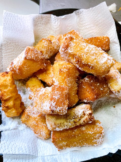 모두 튀겨 내면 취향것 설탕에 굴려준다.