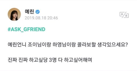 (TMI - 조이가 서공예에 들어갈때 SM에서 온 연습생이 있다고해서 예린이가 보러갔는데 조이가 그때의 예린이를 기억하고있다고ㅋㅋㅋㅋ)