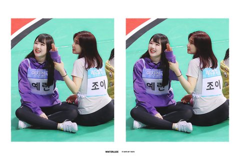 아육대에서 같이 피자먹고 사진찍어주던 조이와 예린