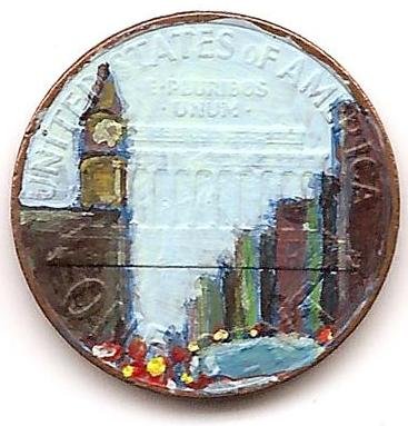 cooper square in manhattan on a mad rainy day 비주얼 아티스트 마이클 리빗(michael leavitt)의 'penny places'에 포함되어 있는 작품들이다. 이 작품들은 1센트짜리 구리 동전 위에 아크릴과 에나멜로 실제로 각각의 동전들이 발견된 장소의 풍경을 그린 것이다. 작품 가격은 200달러로 동일하다.