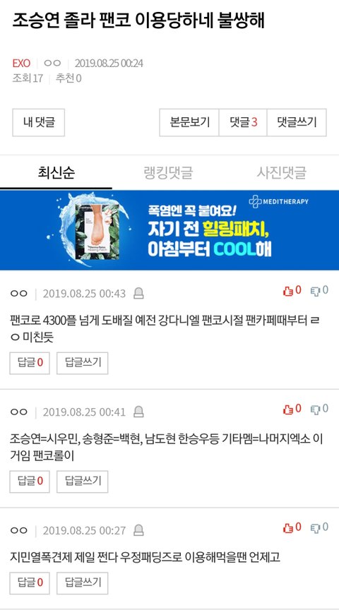 ⬇️조승연 팬코 어쩌고랑 밑에 백현팬 박제 여기서봐