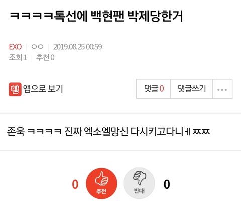ㅋㅋㅋㅋ톡선에 백현팬 박제당한거