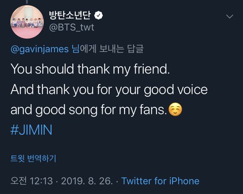 지난 태앱에서 지민이가 노래 추천해준 거 고맙다고 직접 불러서 올렸던 가수 틧에 지민이 답멘 달았다ㅠㅠㅠㅠㅠㅠㅠㅠㅠㅠㅠㅠ