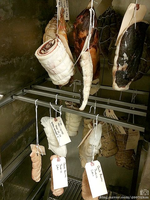 교실 앞의 삼천만원(!)짜리 고기 숙성용 냉장고에서 숙성중인 각종 햄과 소시지가 여기서 뭘 배우게 될지를 예고하고 있습니다.
