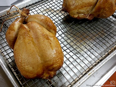 고온 훈제를 마치고 나온 통닭.