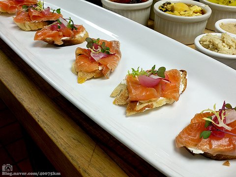 사워크림과 새싹채소를 곁들인 훈제연어 및 염장연어 카나페를 만들다보니 예전에 눈 맞으며 연어 훈제하던 게 생각나네요 (https://blog.naver.com/40075km/221238434056)