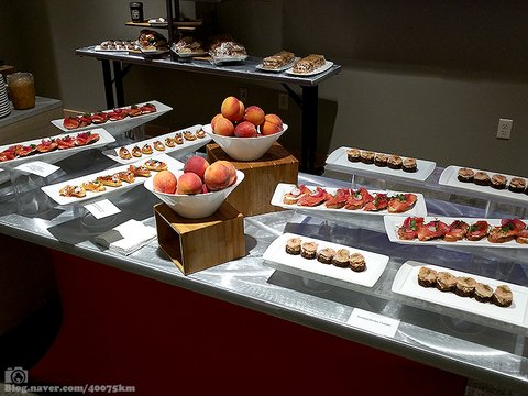 시트팬 가득한 카나페를 냉장고에 보관 해 뒀다가 서비스 접시에 음식이 떨어질 듯 하면 그대로 다시 채워넣으면 됩니다.