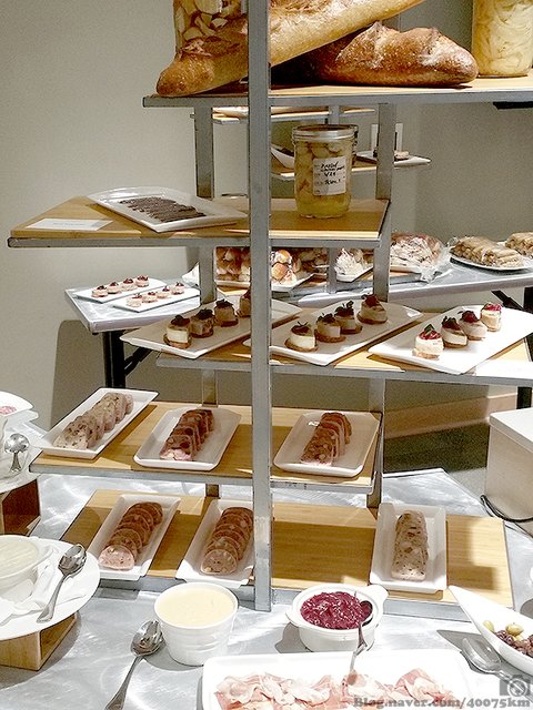 심혈을 기울여 만든 파테, 갈랑틴(닭껍질을 이용해서 만든 소시지) 역시 보기 좋게 잘라서 진열 해 놓습니다.
