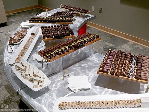 여러가지 요리를 다 먹고 나면 입가심으로 각종 달다구리를 맛볼 수 있게 동선이 짜여져 있습니다.
