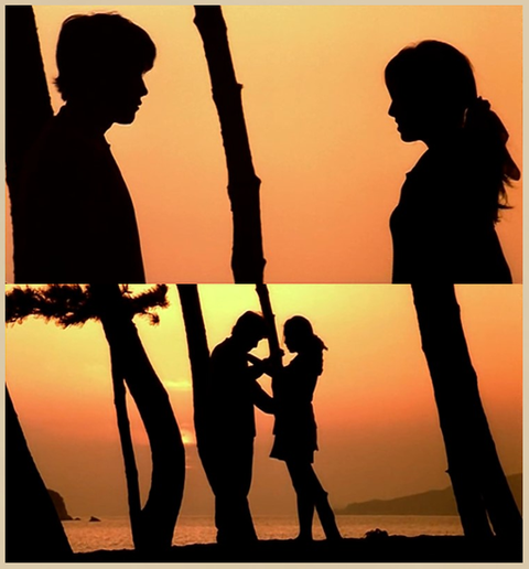 붉은 노을이 지는 해변가에서 인우와 태희가 둘 만의 왈츠를 추는 장면