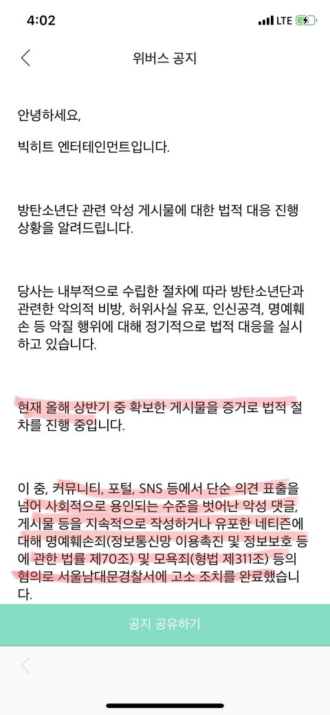 1. 현재 올해 상반기 중 확보한 게시물을 증거로 법적 절차 진행중
