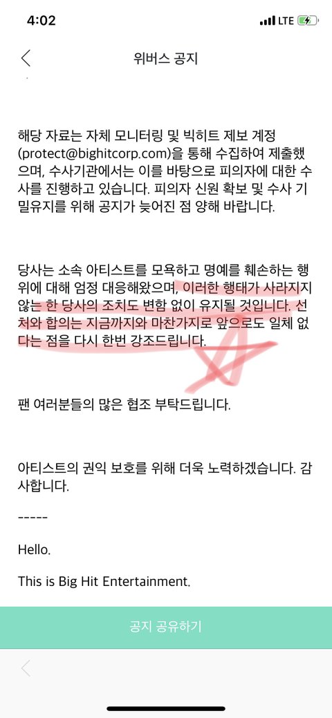 4. 당사 소속 아티스트를 모욕하고 명예를 훼손하는 행태가 사라지지 않는 한 변함없이 조치 예정이며 선처와 합의는 지금까지와 마찬가지로 앞으로 "일체 없음"