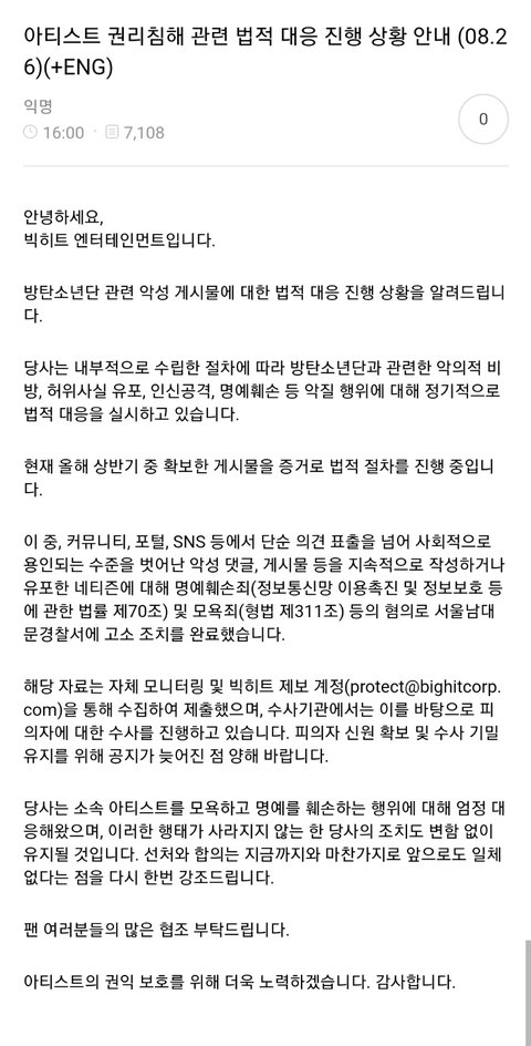 하는 애들 -> 너희 신원특정하고 악플쓴 거 모아모아 정리하느라 늦는 거임 그렇게 바로바로 되는게 아님