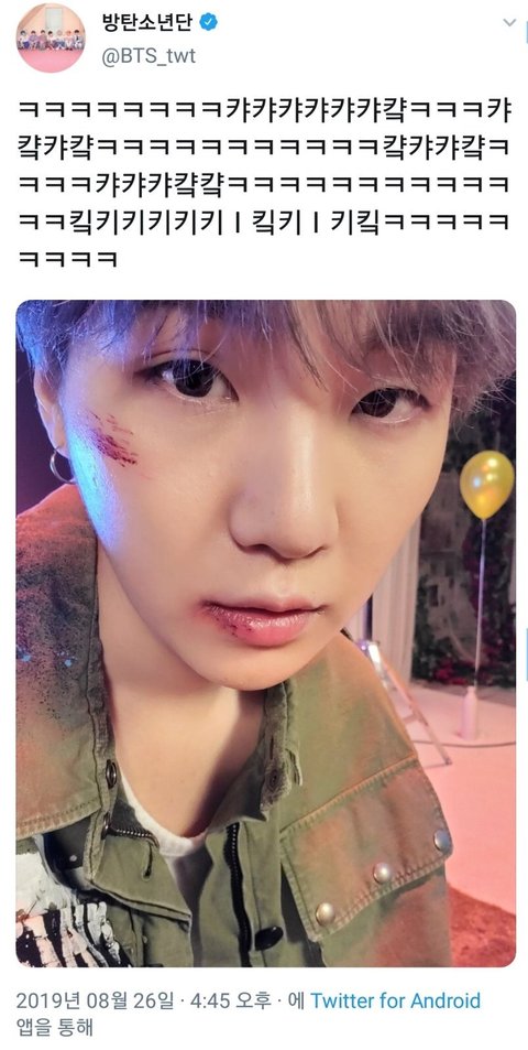 은 바로 방탄 슈가 ㅋㅋ 고소공지 뜬 후에 바로 올린 트윗