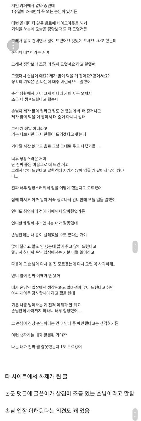 반대 - 손님이 이해간다 알바가 배려심 부족했다.