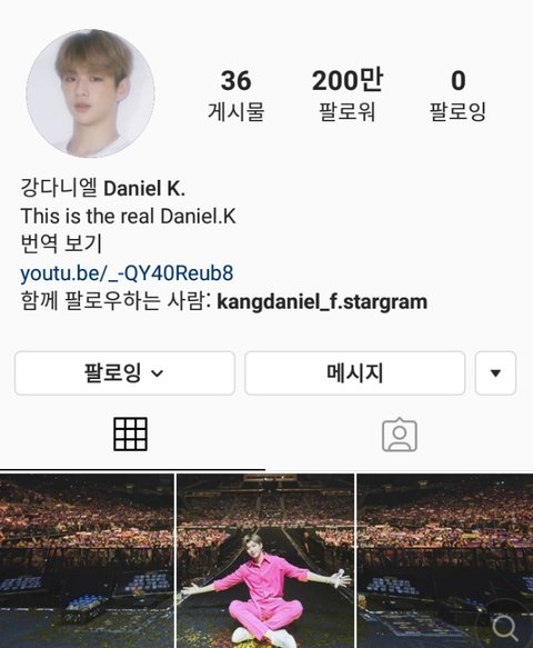 강다니엘 인별 팔로워 200만❤