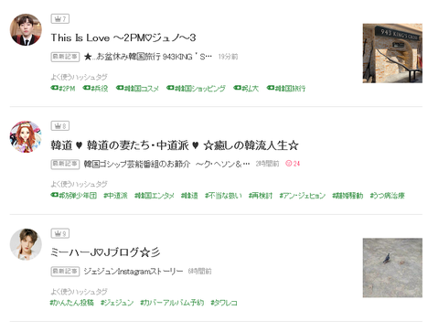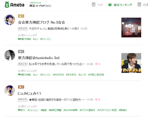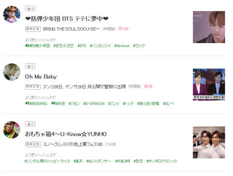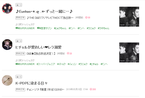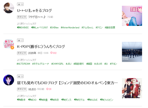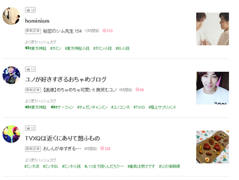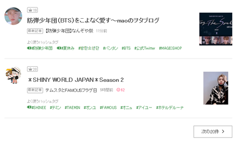 1위 동방신기2위 동방신기3위 김재중4위 방탄소년단5위 빅뱅6위 동방신기 유노윤호7위 2PM8위 K-POP K-드라마 9위 김재중10위 동방신기11위 동방신기 유노윤호12위 동방신기 13위 슈퍼주니어-D&E14위 슈퍼주니어15위 K-POP16위 샤이니 태민17위 K-POP18위 엑소19위 방탄소년단20위 샤이니