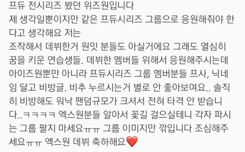엑스원 멤들한테 인신공격하고 악플 까라는 소리가 아니라 적어도 이런 댓글은 안달아야 되는거 아님?