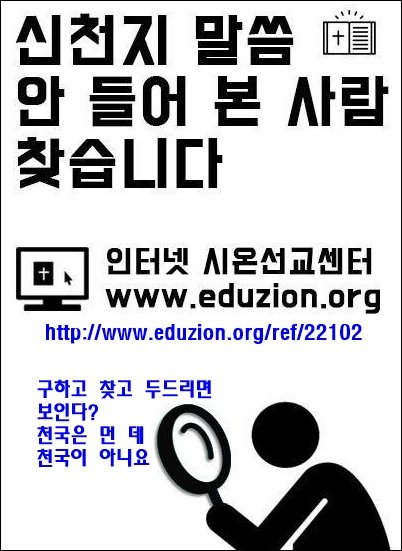 무료성경공부! 인터넷 시온선교센터가 문을 열었습니다.모든 신앙인들에게 시간과 환경과 조건을 뛰어넘고이 생명의 말씀을 배우시고 하늘이 이 땅에 이룩하고자 하는 나라와 백성이 되어 주십시오.