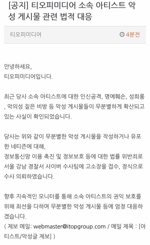 우석 팬들이 전화총공해서 그런지 어제 고소 공지 떴음ㅇㅇ