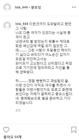 류제국 은퇴배경. 류제국 와이프 남편의 불륜인정