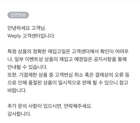 그래도 마지막 썸패란 말에 불안해서 문의해봤는데