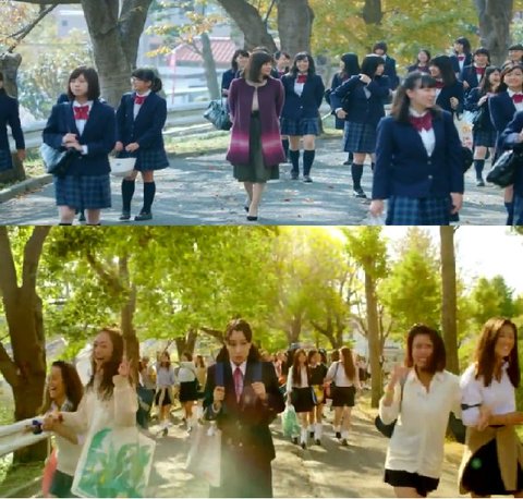 원작의 어른 나미가 학교로 향하는 장면에서 자연스레