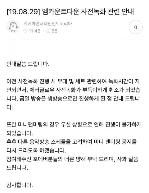 엑스원 사녹 딜레이 돼서 에버글로우 사녹 취소됨