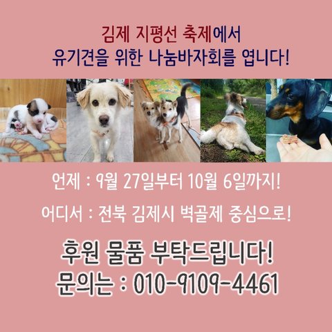 #김제지평선축제 #입양캠페인및바자회 #사지말고입양하세요 #유기견입양 #후원물품