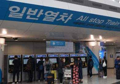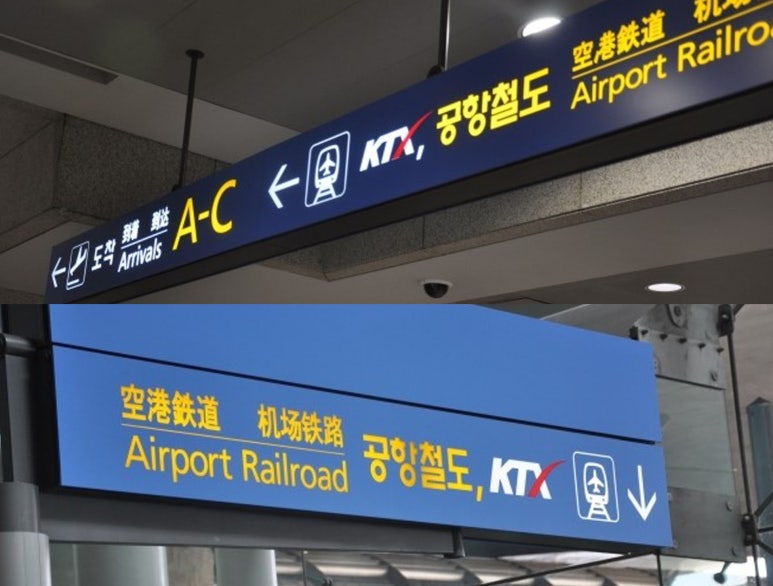 Airport Railroad sign boards Using the Airport Railroad is the easiest and quickest method to get to our house. To board the Airport Railroad at Incheon International Airport, simply follow the Airport Railroad signs that are present at the terminal, mostly in yellow writing. There are two rail services from Incheon: an express service direct to Seoul Station, and an All Stop Train. You will need to board the All Stop Train, as you will be heading to “Gongdeok” station.