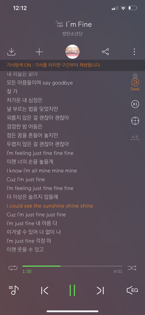 아임파인 듣는데 갑자기 다큐에서 정국이가 이제 사람들은 저희들을 봐주지 않는다는 말이 생각났어 ㅠㅠ