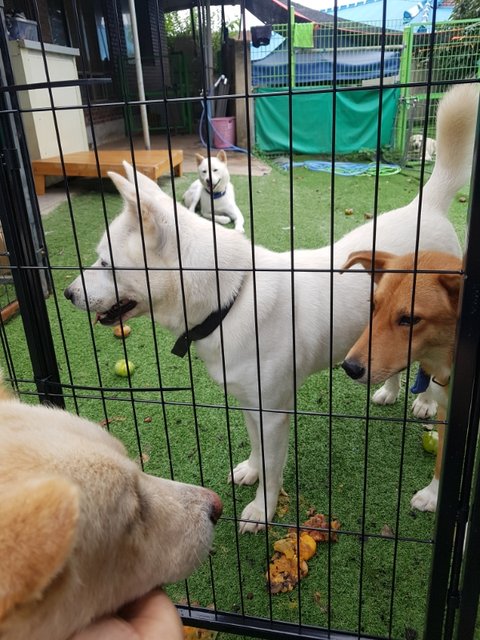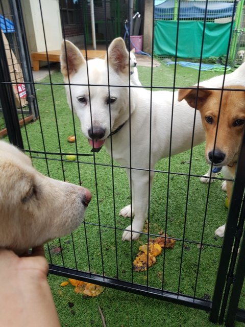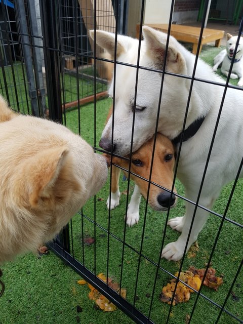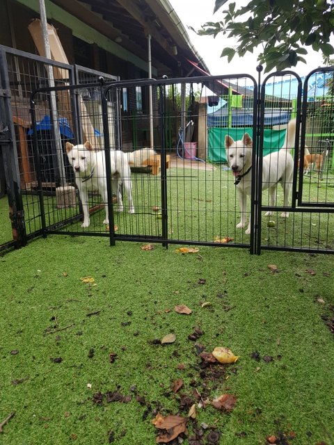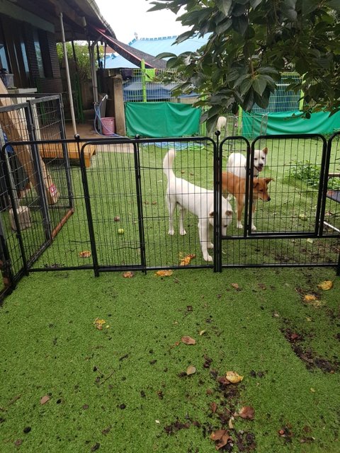 대형견들이고 합사하기까지 시간이 걸려 분리공간을 만들다보니 마당이 조금씩 나눠지고 있어요