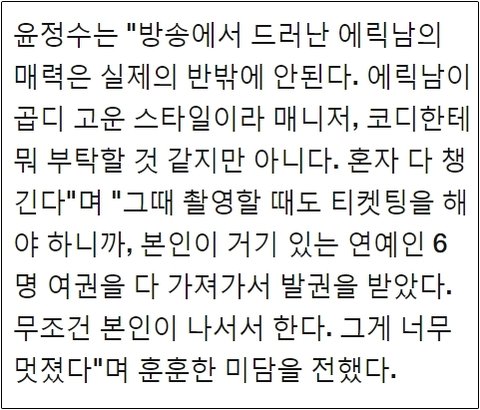 진짜 에릭남은 대단하다. 저렇게 뭘 하나를 해도 다 대박에다가 그 망해가던 우결프로를 해도 광고 10개 넘게 따고 뜨니까 인위적으로 이미지 추락시키려고 역바이럴까지 설치고 악플러는 천만원 넘게 벌금물고 사과문 올리고 난리났었는데ㅋㅋ 에릭남땜에 역바이럴이란 말 자체가 공론화되기 시작함.. https://youtu.be/TfX1x9K1l8I 유툽보면 자세히 나오더라.