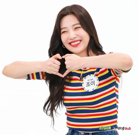 사진] 그룹 레드벨벳 조이가 MBC MUSIC을 통해 방송된 '주간아이돌'에 출연해 시청자들을 향하며 하트 포즈를 취하고 있다