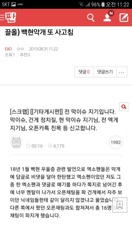 저거 글쓴애가 주작이라고 글 썼다가 글삭하고 사라지고 저 걸로 싸불당한 팬들 고소준비중이라더라 그로야