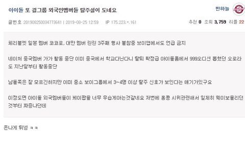 신인남돌 까글이 연예톡1위ㅋㅋㅋㅋㅋ얘네 조카 반응오나보네 견제오짐...