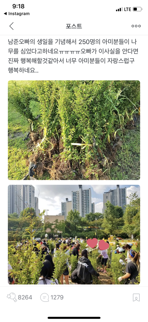 오늘 가서 나무 심고 왔는데 선한 영향력에 대해 다시한번 더 진지하게 생각하게 된 것 같아ㅠㅠ 방탄도 사랑하고 아미도 사랑하고 나무를 사랑하는 남준이도 사랑해