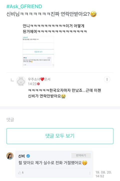 신비가 진짜 연락 안 받느냐고 다시 팬들이 전달해줌ㅋㅋㅋㅋㅋ