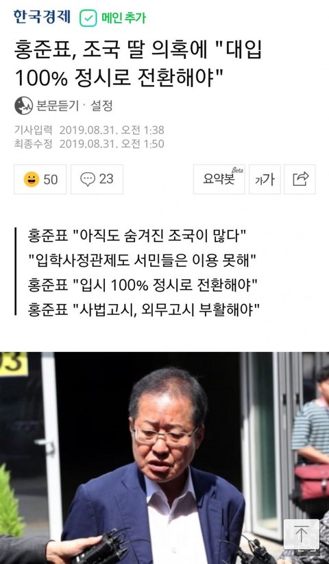 수시 진짜 솔직히 말 많잖아 거지같은 전형에 꿀 빨고 가는 사람들 많고.... 그래서 홍준표가 정시 100프로 해야한다고 하는데 너넨 어때? 이렇게 수시 비리 많을바에 난 정시 올인이 나은거같음