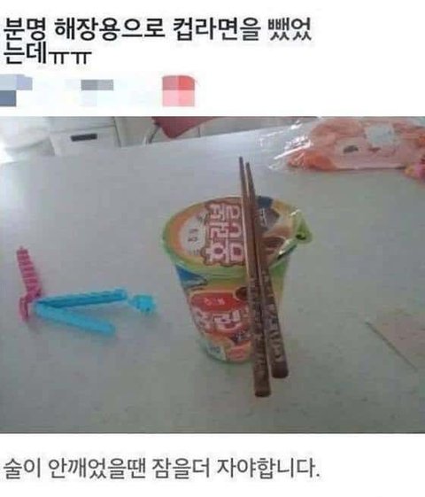 분명 해장할려고 컵라면을 샀었는데..
